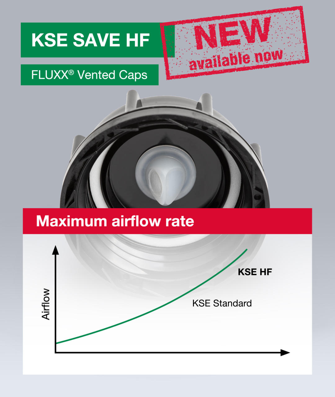 We are pleased to announce the market launch of our new product KSE SAVE OV HF (High-Flow) as an extension of our FLUXX Vented Caps product family.
